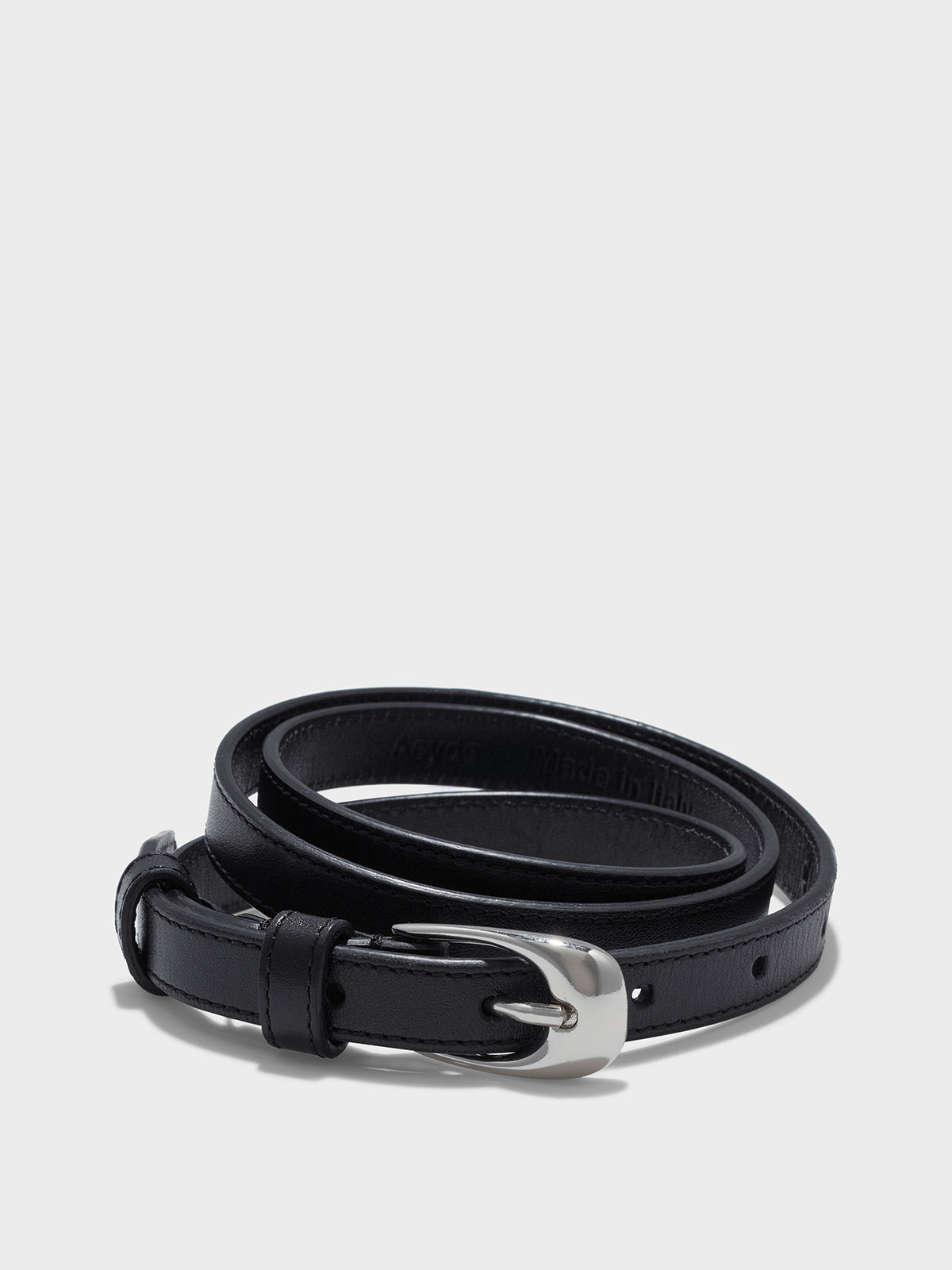 Be the first to review “Aeyde Women’s Eleanor Leather Belt | Black & Silver Calf” Cancel reply