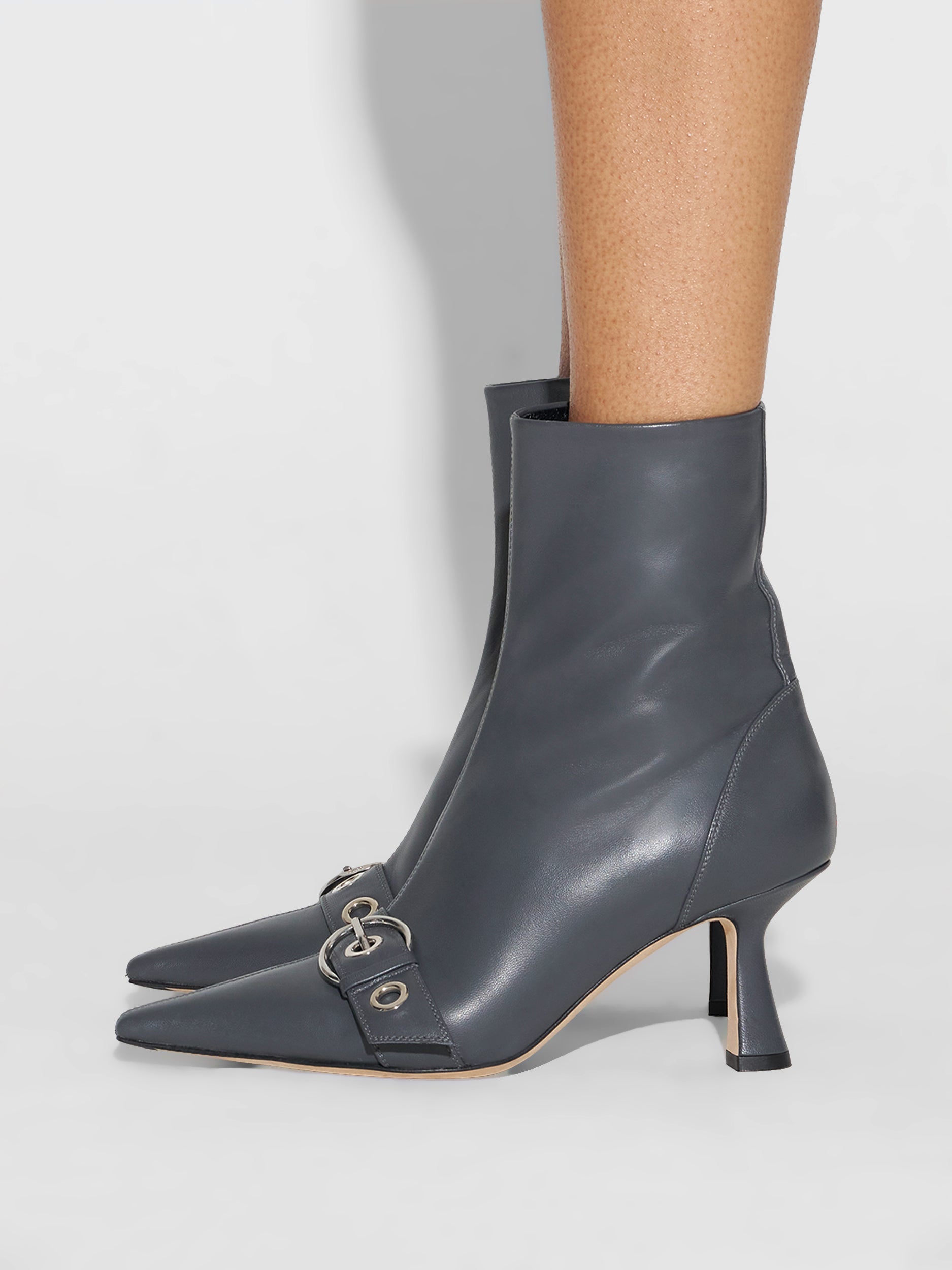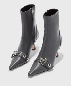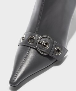 Aeyde Women’s Footwear Halima Eyelet Pointed Boots | Charcoal Nappa