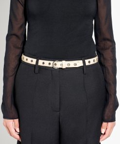 Aeyde Women’s Reed Eyelet Belt | Creamy & Silver Polido
